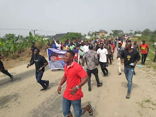 Ogbia town was a beehive of activities as youths came out in their large numbers to show solidarity with Governor Henry Seriake Dickson for earmarking a billion naira for infrastructural development of the region.